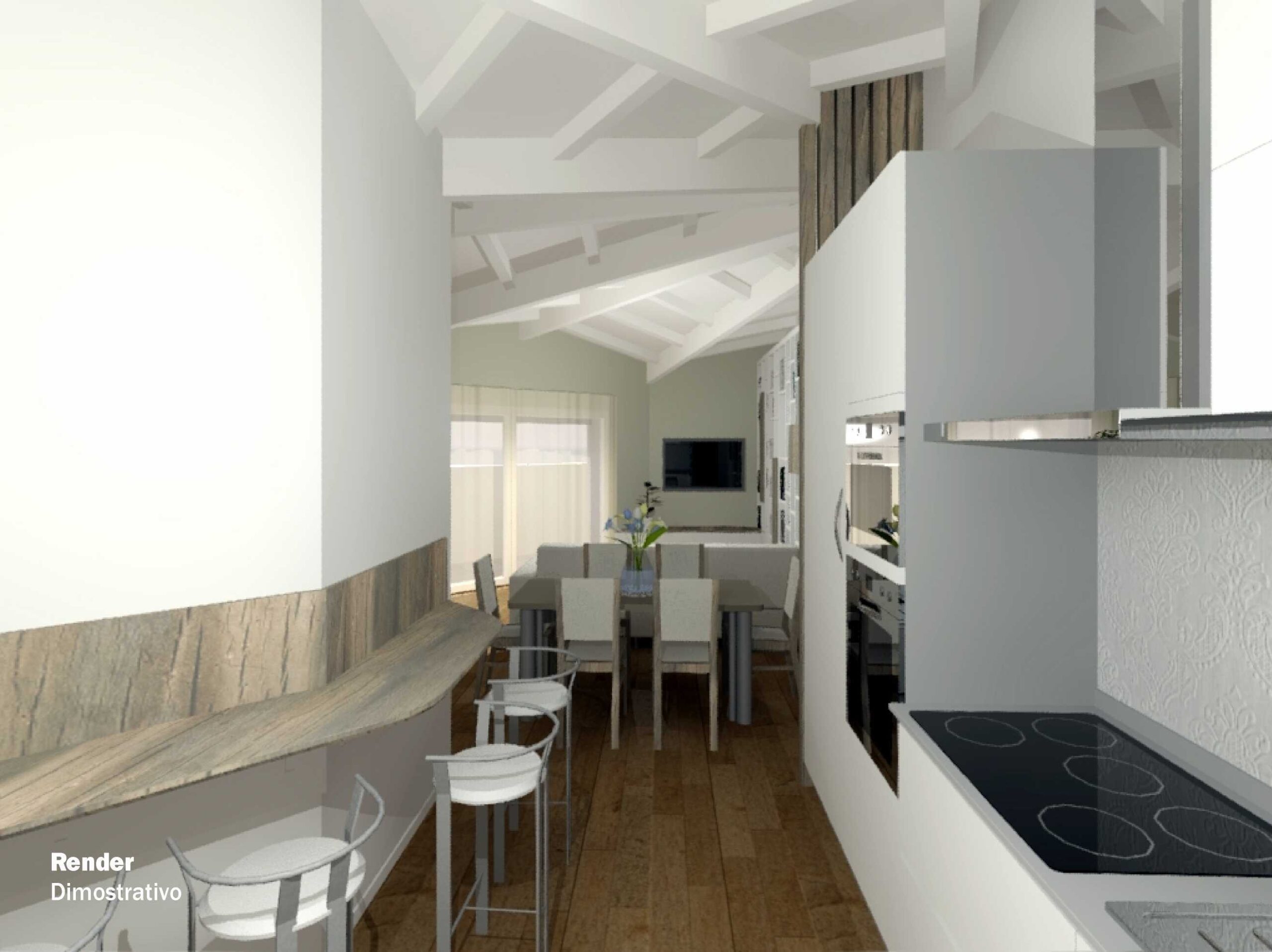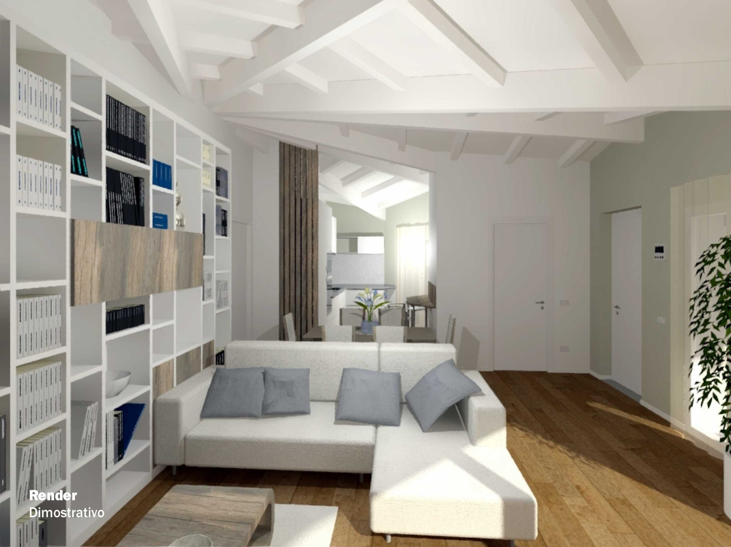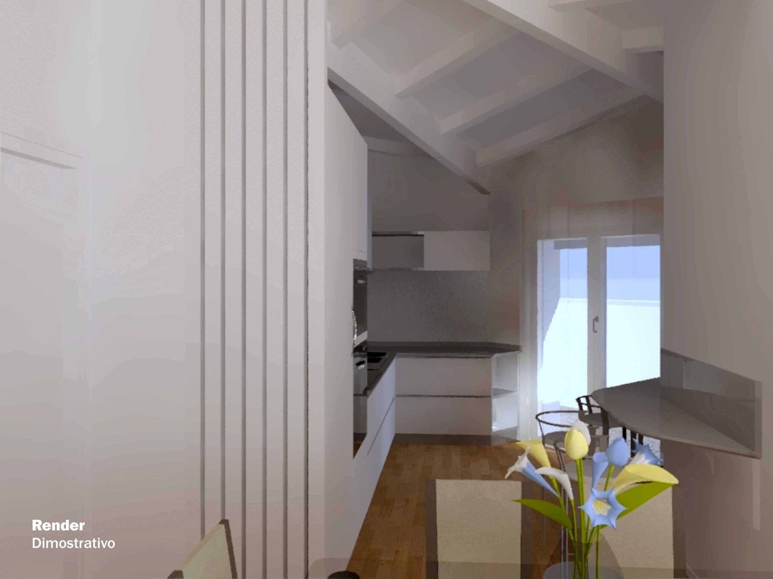 Questa soluzione, è composta da un capiente ingresso con grandi vetrate, una stupenda zona living, la cucina, tripli servizi e tre comode camere.